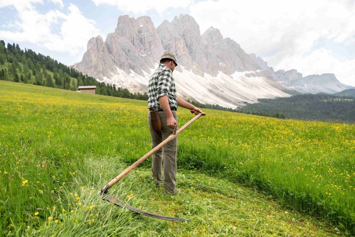 Hinter der landschaftlichen Schönheit Südtirols steckt harte Arbeit. Denn für den Erhalt unseres charakteristischen Landschaftsbilds ist die fachgerechte Bewirtschaftung und Pflege der Wiesen, Wälder und Almen wichtig. Fast die Hälfte der landwirtschaftlichen Flächen liegt an Hängen mit über 30 % Neigung.